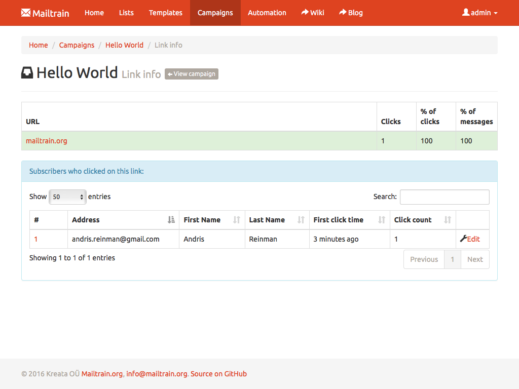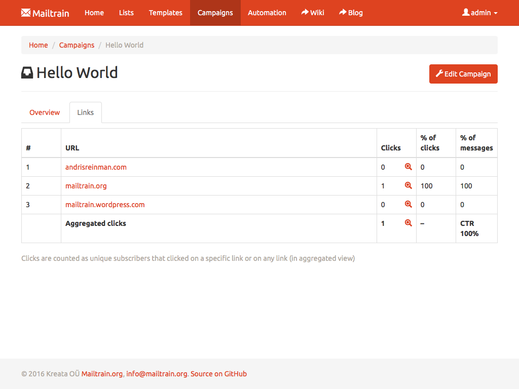 After a campaign is sent, check individual click statistics for every link included in the message.