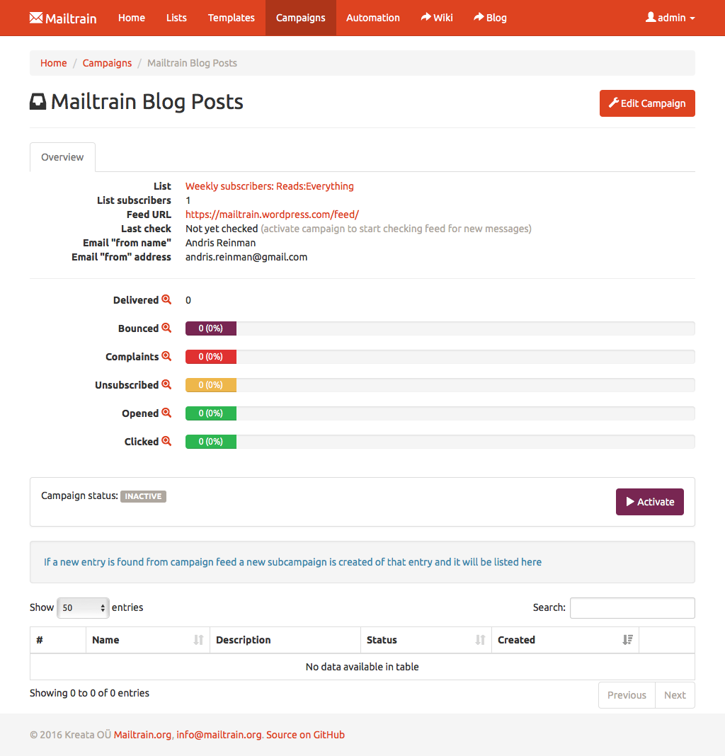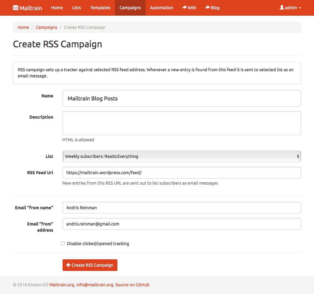Setup ISTC Mailing System track RSS feeds and if a new entry is detected in a feed then ISTC Mailing System auto-generates a new campaign using entry data as message contents and sends it to selected subscribers.