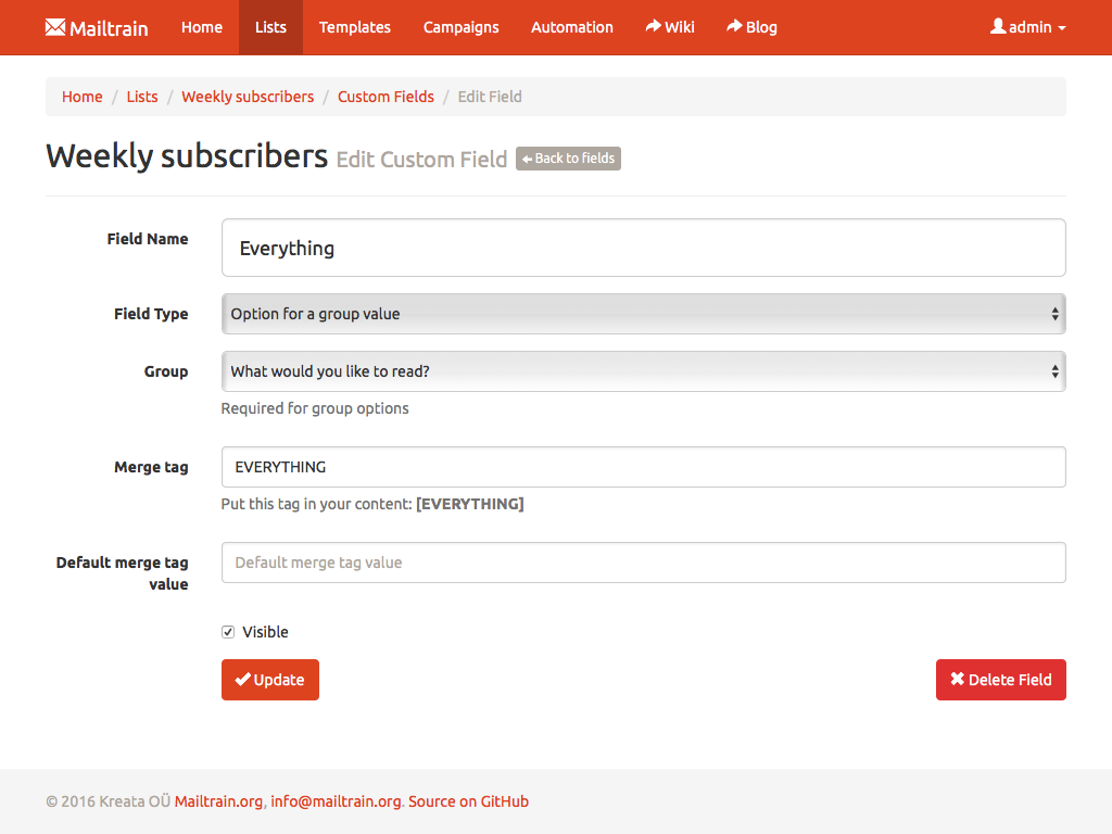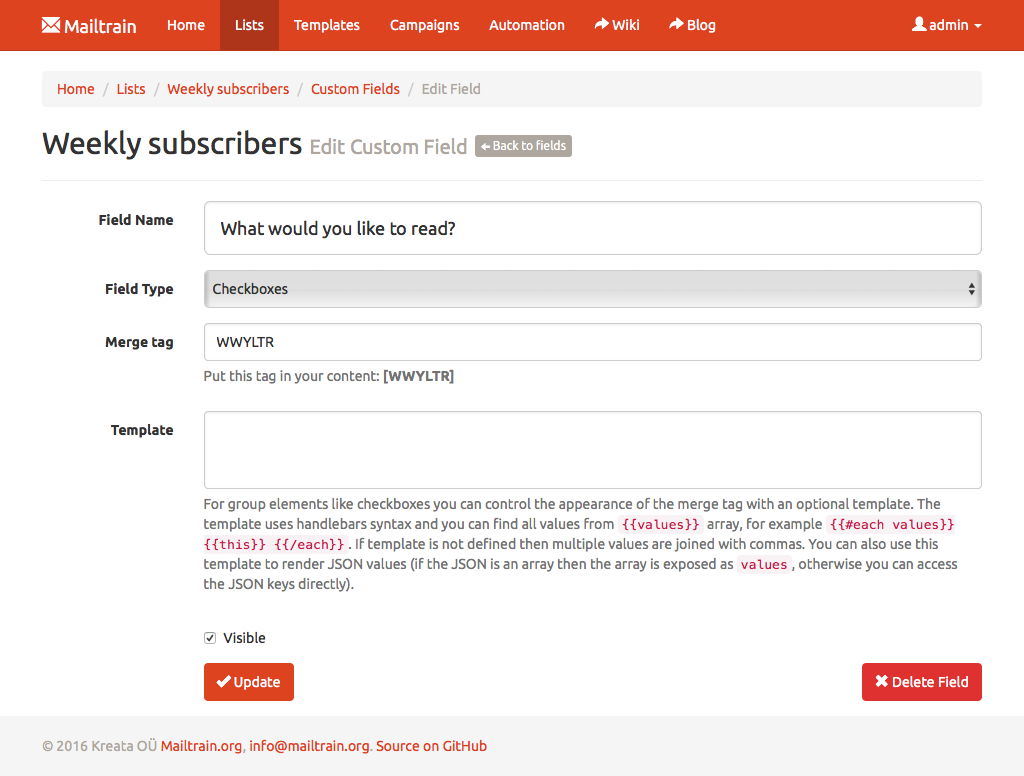Text fields, numbers, drop downs or checkboxes, ISTC Mailing System has them all. Every custom field can be included in the generated newsletters through merge tags. ISTC Mailing System also supports custom forms.