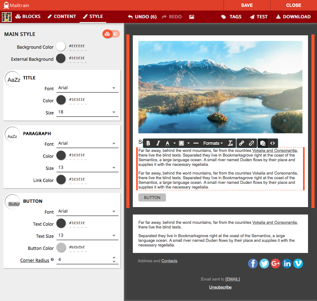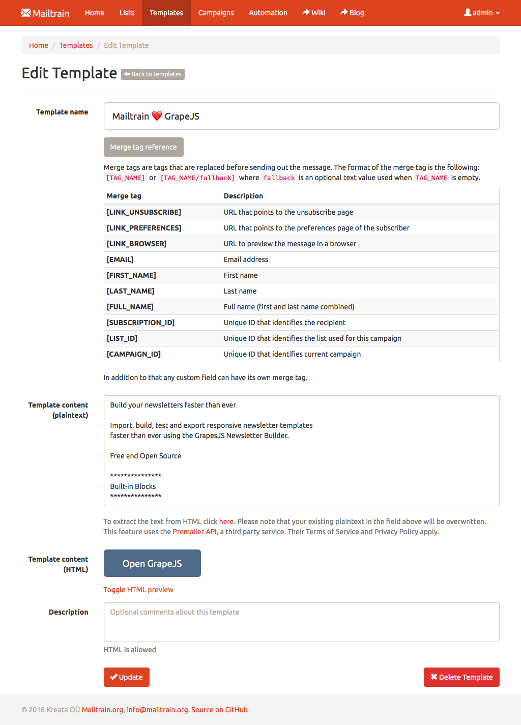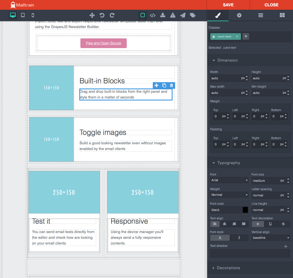 ISTC Mailing System ships with GrapeJS and Mosaico built in, two advanced template editors. ISTC Mailing System also offers a code editor if you prefer to handcraft the HTML yourself.